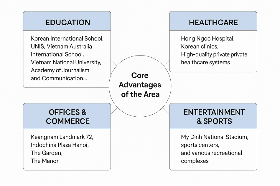 Không chỉ có cộng đồng Hàn Quốc đông đảo, Mỹ Đình – Cầu Giấy còn nổi bật bởi hệ sinh thái tiện ích đồng bộ:
