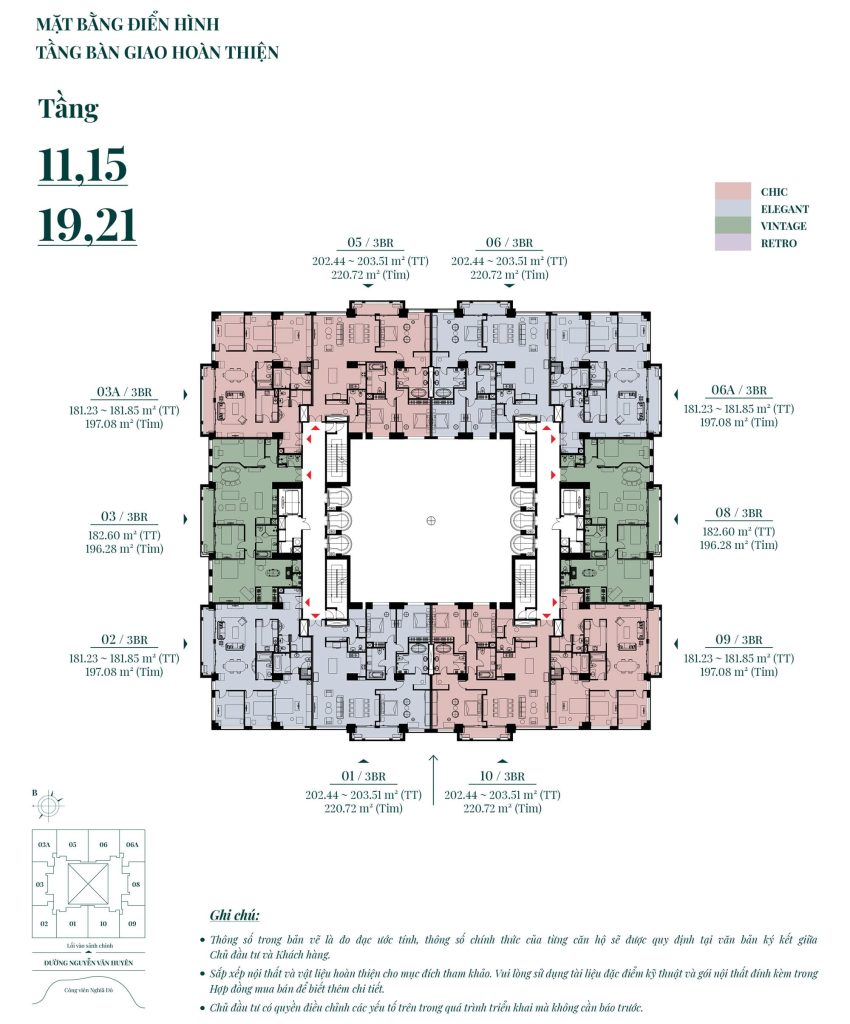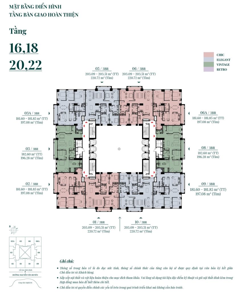 Tổng số căn: 240 căn hộ cao cấp, 2 căn penthouse.