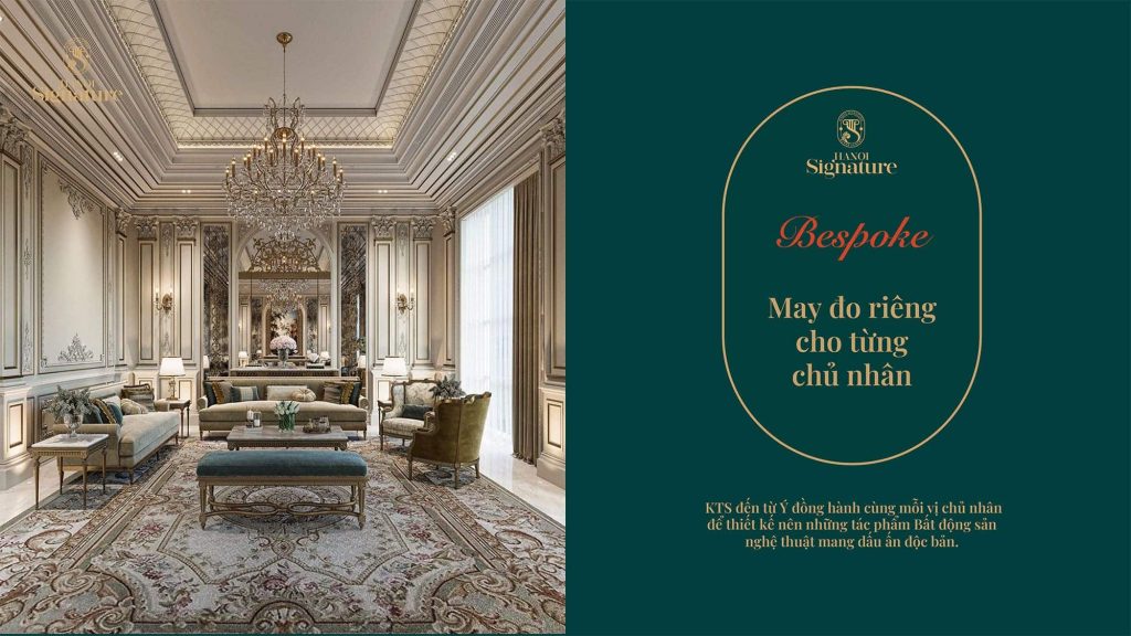Hà Nội Signature được thiết kế theo phong cách kiến trúc Pháp, Ý cổ điển. Mang vẻ đẹp nguy nga của cung điện Versailles ngay giữa lòng Hà Nội. Hội tụ những giá trị vàng của một dự án bất động sản hạng sang: Vị trí chiến lược với tầm nhìn rộng lớn. Thiết kế đặc trưng từ kiến trúc sư danh tiếng. Nội thất cao cấp được chế tác tinh xảo và tiện nghi ưu Việt.