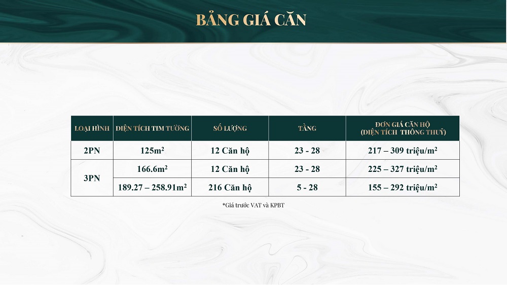 Loại căn hộ: 2PN, 3PN, Penthouse