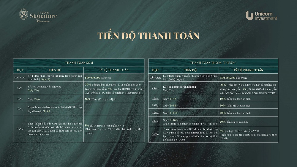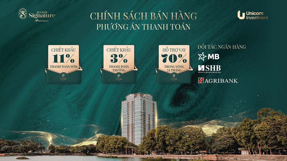Hiểu được tầm quan trọng của việc sở hữu một sản phẩm đẳng cấp như Hanoi Signature, chúng tôi đã xây dựng những phương án thanh toán linh hoạt và chính sách ưu đãi hấp dẫn. Nhằm hỗ trợ tối đa Quý khách hàng trên hành trình hiện thực hóa giấc mơ an cư lý tưởng.