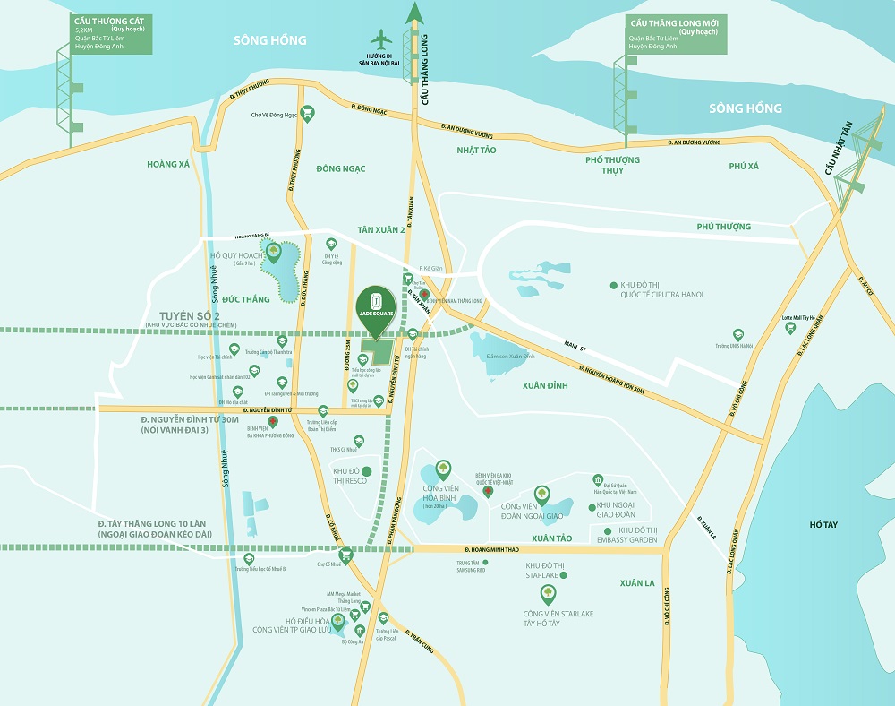 Jade Square có vị trí đắc địa tọa lạc tại khu đô thị Bắc Từ Liêm – Chèm, phường Xuân Đỉnh, có vị trí đắc địa trung tâm của quận Nam Từ Liêm. The Jade Square là một siêu dự án có quy mô và vị trí tuyệt đẹp kết nối với hạ tầng trong khu vực CBD mới của thủ đô, hứa hẹn là tâm điểm bất động sản khu vực phía Tây thủ đô.