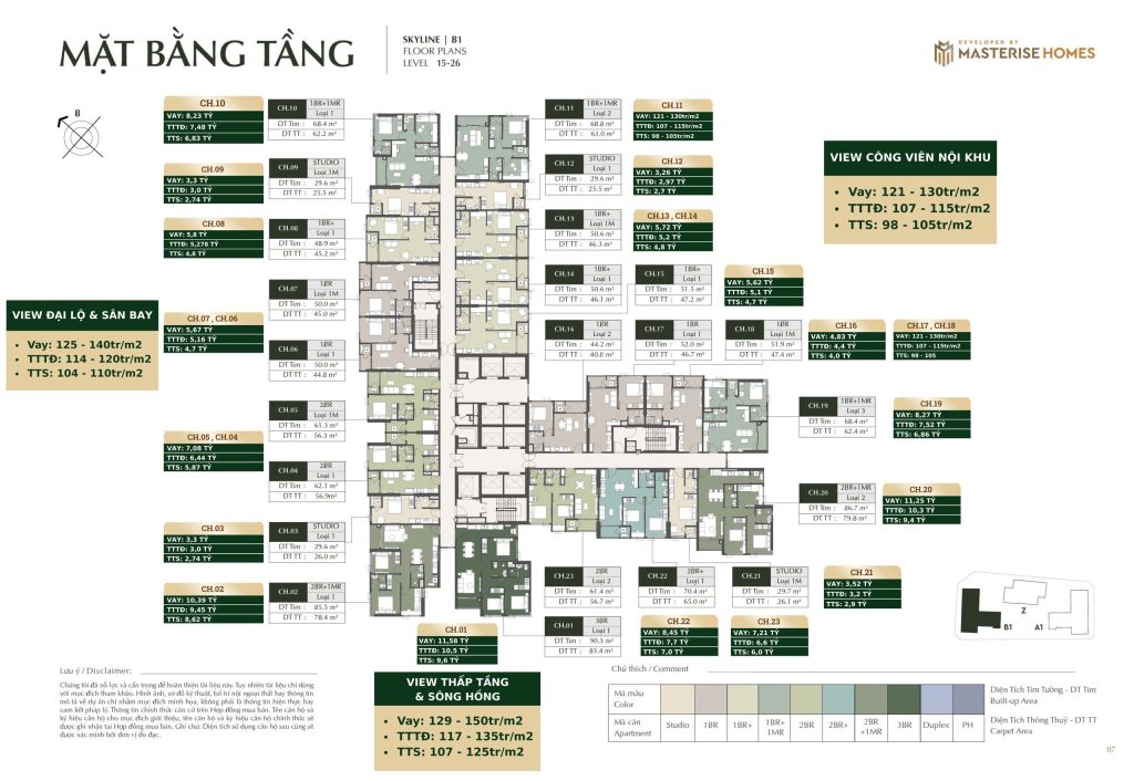 Loại hình căn hộ: Đa dạng lựa chọn gồm Studio, 1PN, 1PN+, 1PN+1, 2PN, 2PN+, 2PN+1, 3PN, Duplex và Penthouse