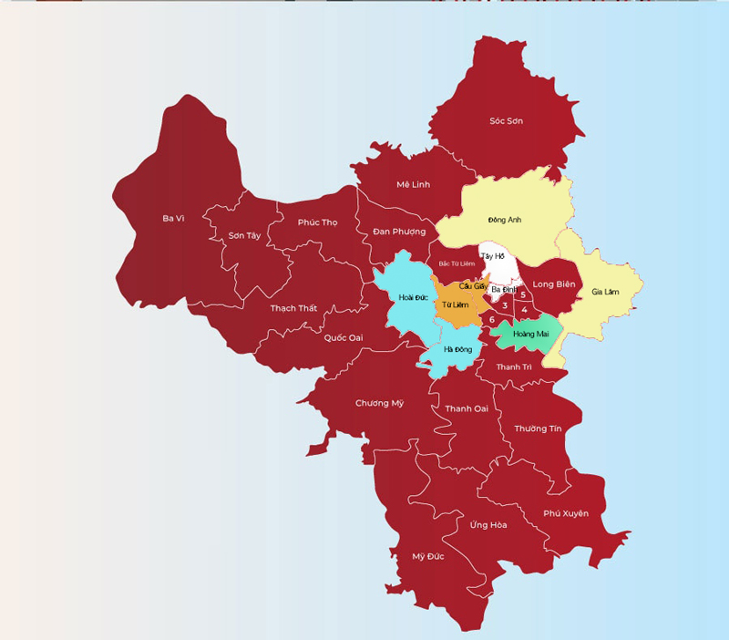 예를 들어, 같은 면적과 편의시설을 가진 프로젝트라도 Ho Tay에 위치하면 Hoang Mai나 Ha Dong보다 2~3배 높은 가격을 기록할 수 있습니다.
