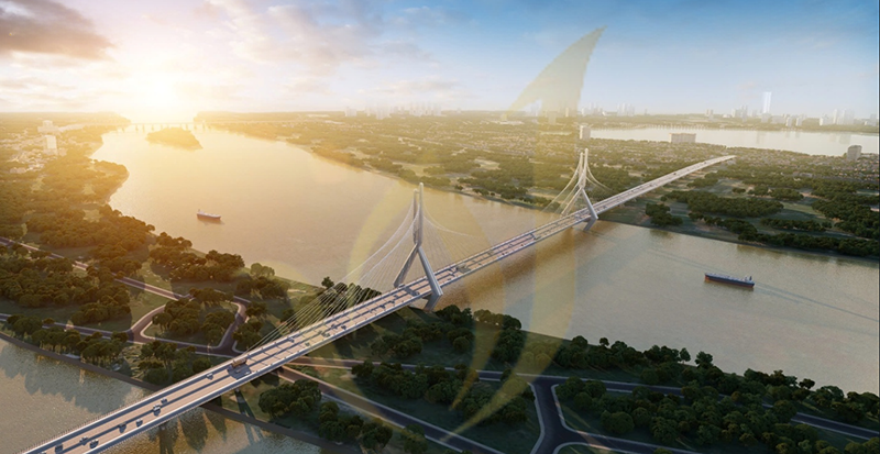 뚜리엔 교량 조감도. 이 프로젝트는 교통 혼잡 완화에 그치지 않고 지역의 경제·사회 발전을 촉진하며 인근 부동산 가치를 높이는 역할을 하고 있다.