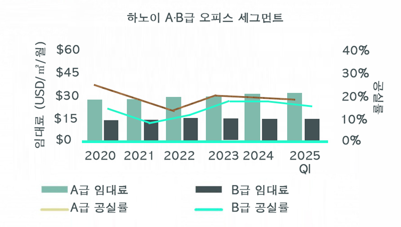 A급 오피스: 점유율 안정적, 임대료 2~3%/년 상승