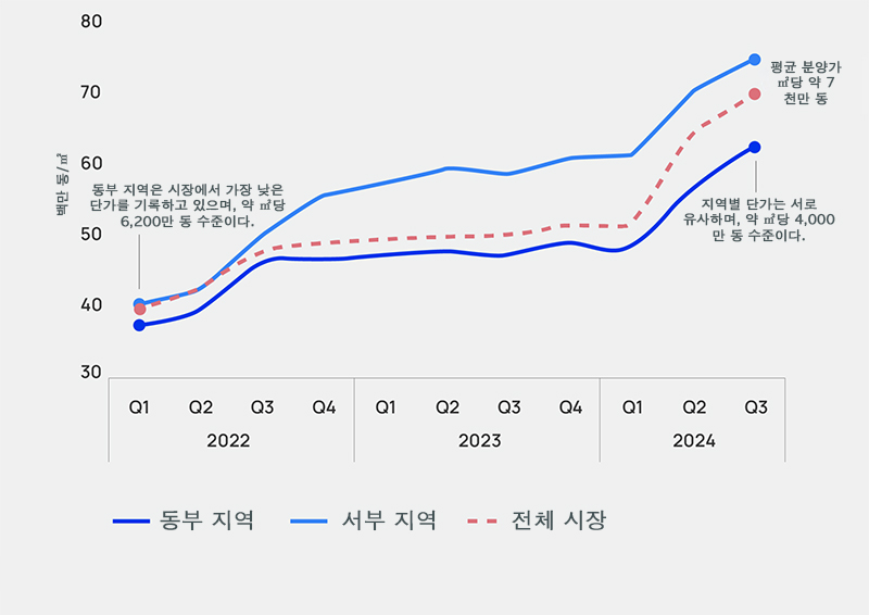 2024년 4분기 하노이 아파트 평균 가격: 72백만 VND/m² (+7% YoY)