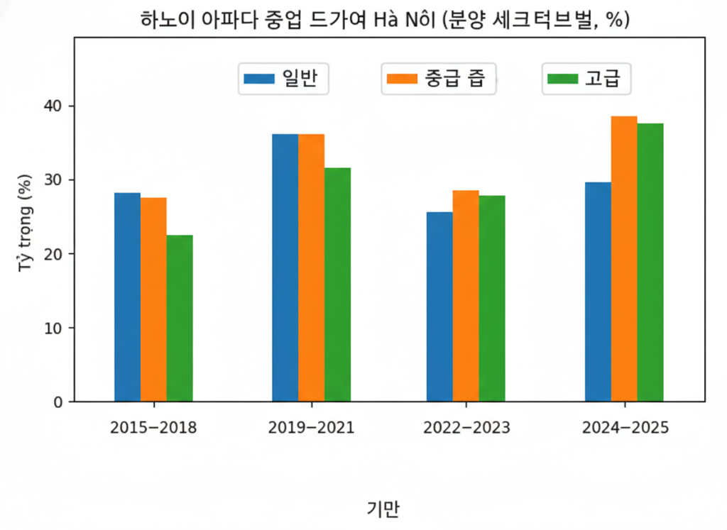 현재 하노이 고급 아파트 구매자의 약 55%가 실거주 및 장기 보유 목적인 것으로 나타났습니다. 이는 과거의 단기 투기성 자본이 빠져나가고, 시장이 실질적인 거주 가치와 안정적인 자산 축적을 중시하는 건강한 구조로 바뀌었음을 의미합니다.