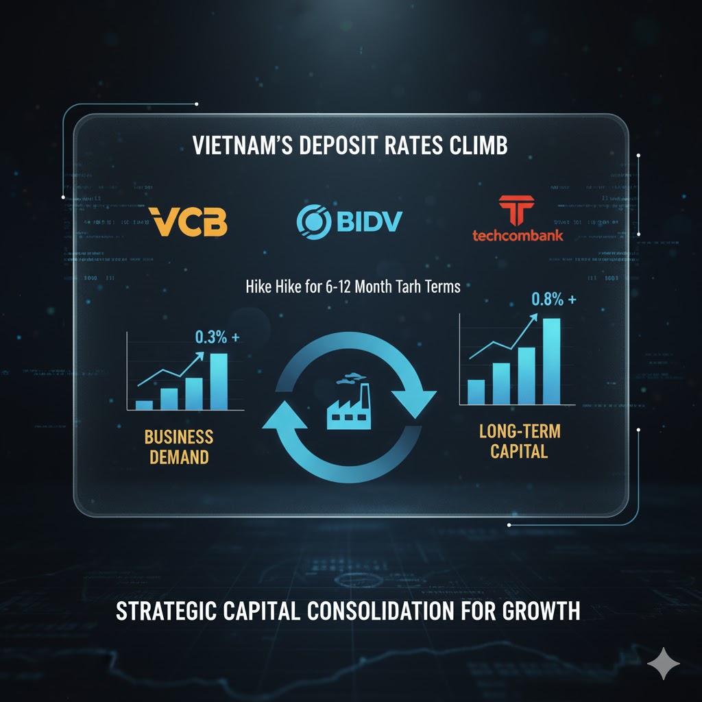 Từ quý III/2024 đến nay, các ngân hàng thương mại lớn như Vietcombank, BIDV, và Techcombank đã điều chỉnh tăng 0,3–0,8 điểm % đối với kỳ hạn 6–12 tháng.