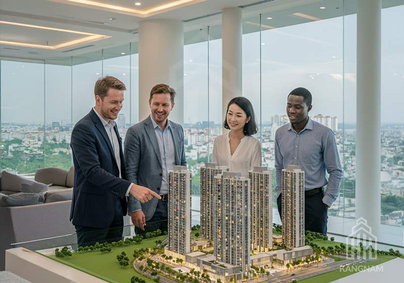 Kangnam Land – chuyên gia môi giới bất động sản cho khách hàng Hàn, Nhật, Singapore. Đơn vị cam kết đồng hành từ A đến Z: kiểm tra pháp lý, chọn dự án, dịch vụ song ngữ, hỗ trợ thủ tục. Liên hệ ngay hôm nay để được tư vấn chuyên sâu và nhận danh sách dự án phù hợp nhất.