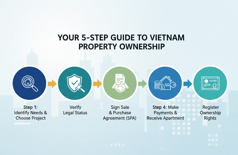 Quy trình mua căn hộ dành cho người nước ngoài tại Việt Nam được quy định trong Luật Nhà ở và các nghị định hướng dẫn. Tuy nhiên, thủ tục cần nắm rõ từ điều kiện pháp lý, hạn ngạch sở hữu, đến đăng ký sổ hồng… Bài viết này sẽ tóm lược từng bước từ A đến Z, giúp nhà đầu tư ngoại yên tâm sở hữu căn hộ hợp pháp và an toàn.