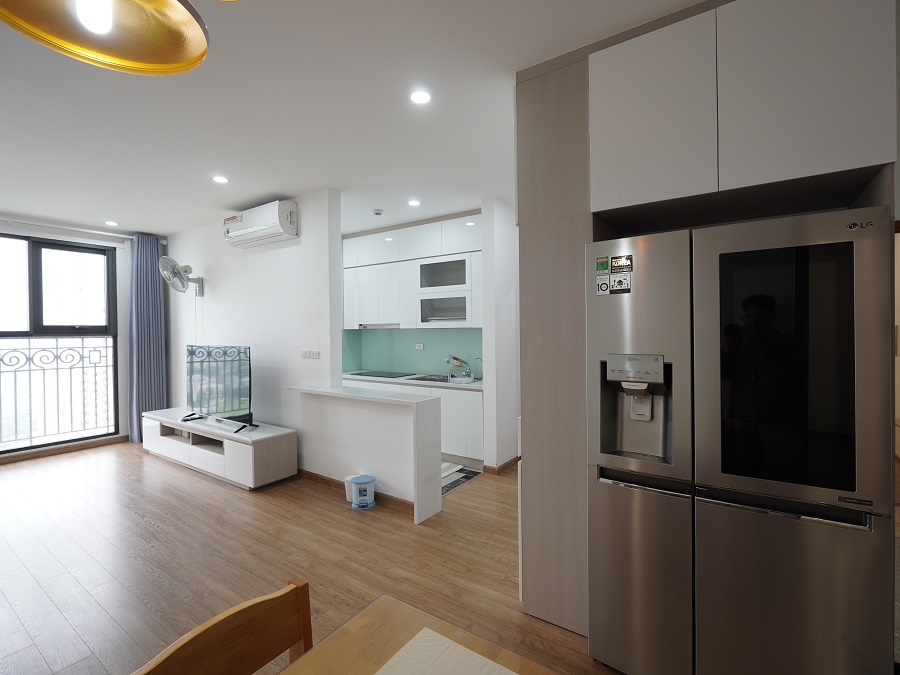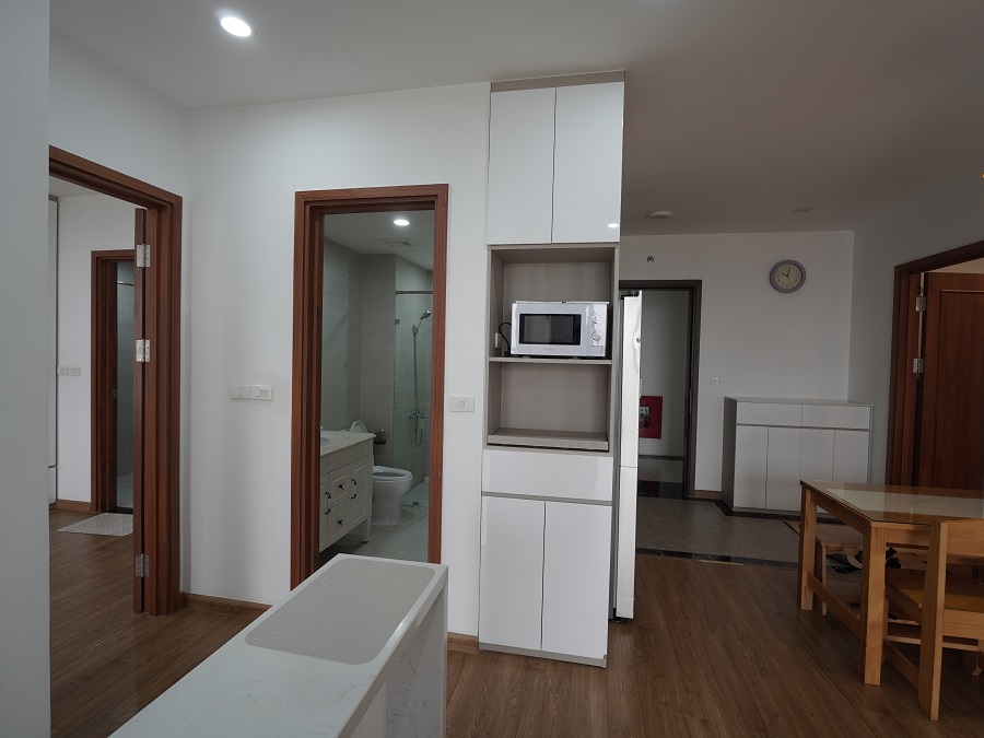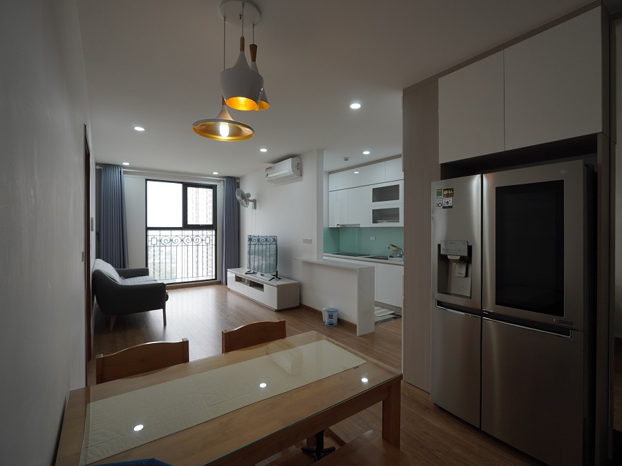 Căn hộ có phòng khách rộng, ban công thoáng, ánh sáng tự nhiên tốt, phù hợp cho gia đình hoặc chuyên gia nước ngoài sinh sống và làm việc tại khu vực Mỹ Đình – Nam Từ Liêm.