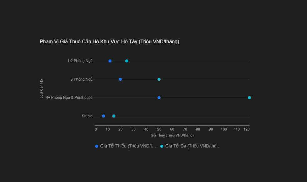 Các dự án cao cấp và siêu sang tại Hồ Tây luôn có mức giá thuê cao, nhưng bù lại là tỷ lệ lấp đầy ổn định. Ví dụ: